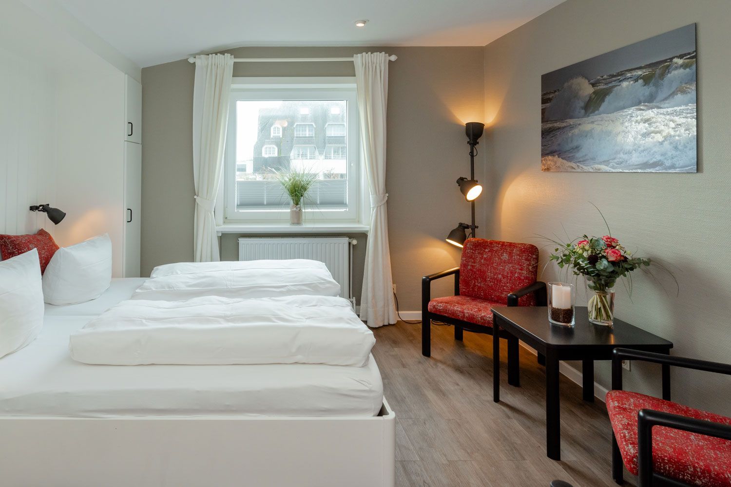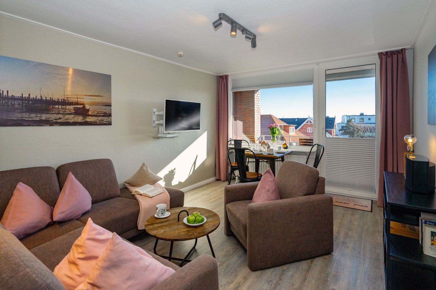 Dieses charmante Ensemble aus drei individuellen Ferienwohnungen erwartet dich in einem Einfamilienhaus direkt hinter den Dünen von Westerland – nur einen Katzensprung vom Strand entfernt. Der Übergang „Himmelsleiter“ zur linken, die „Käpt’n-Christiansen-Straße“ zur rechten, die Fußgängerzone ganz nah und der Sonnenuntergang direkt vor der Tür – hier erlebst du Sylt mit all seinen Facetten. Und das Beste: Das sanfte Meeresrauschen gibt es inklusive, wenn du einfach die Fenster offenlässt.
